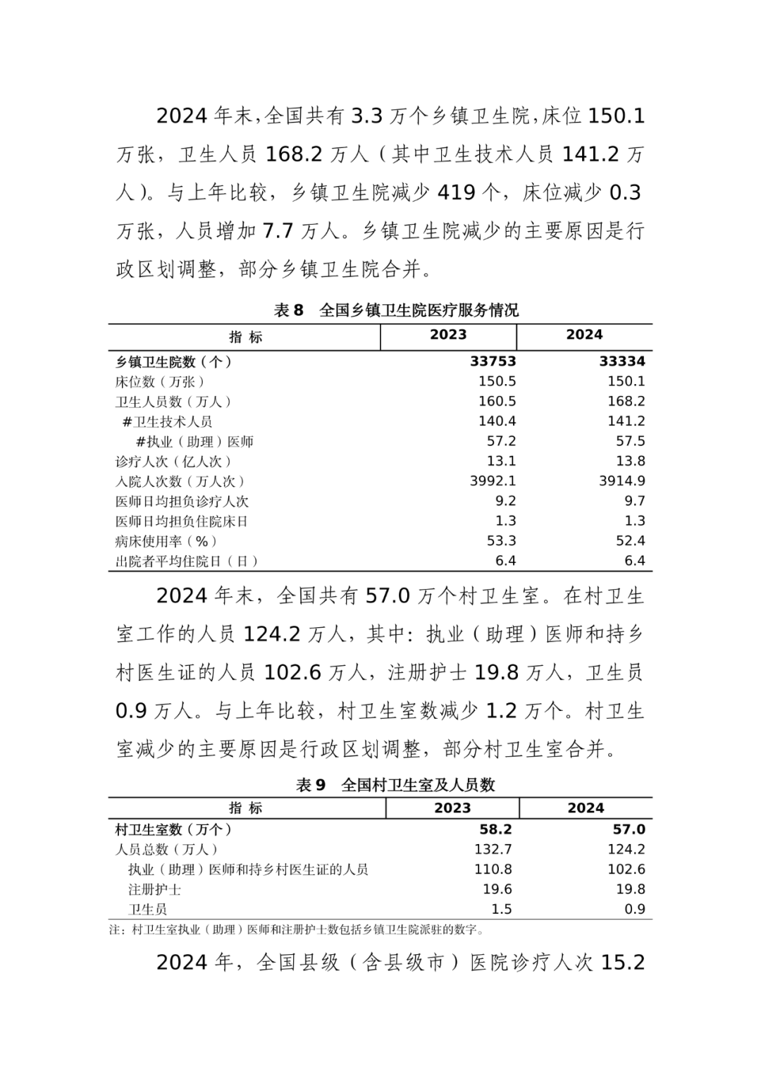 以下为《2024年我国卫生健康事业发展统计公报》全文: