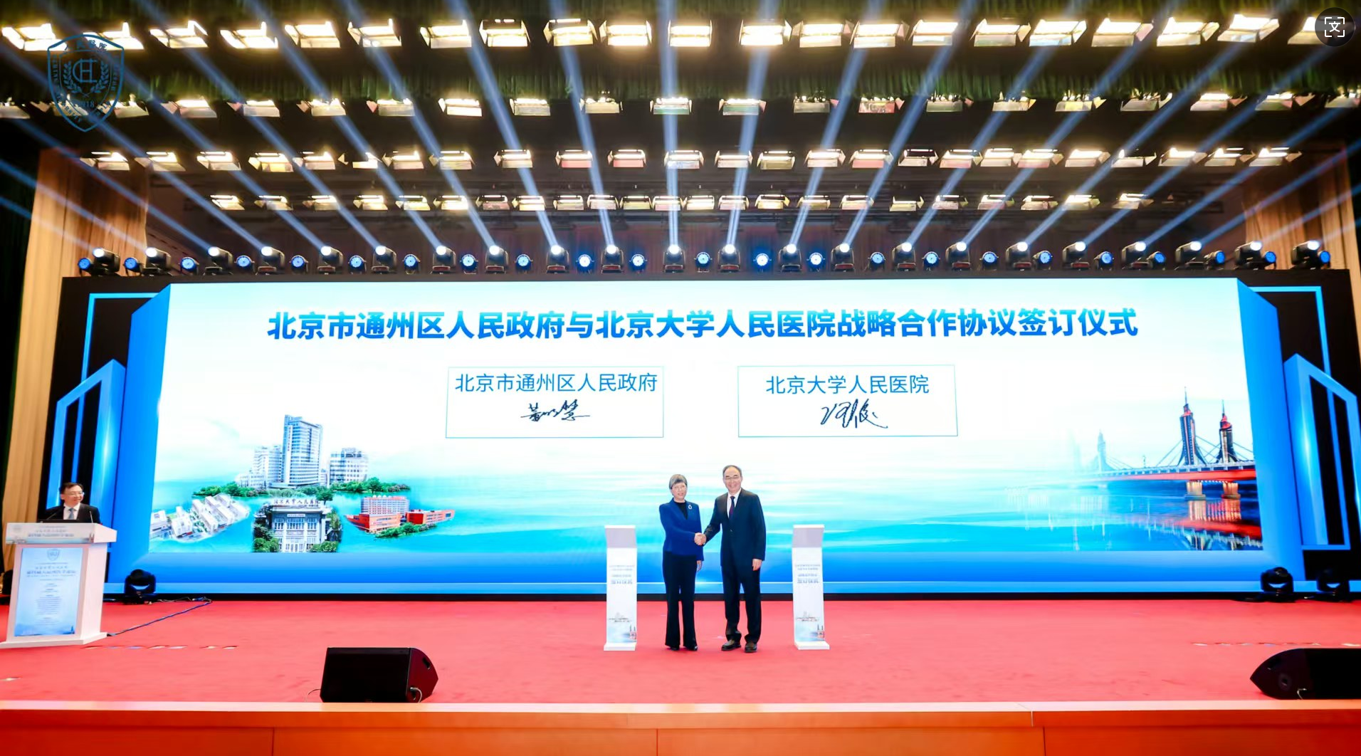 院地协同作为本届论坛的又一重要议题,被视为是推动优质医疗资源扩容下沉、服务区域高质量发展的重要路径。北京大学人民医院通州院区自运行以来,持续发挥“国家队”医院的引领辐射作用,为北京城市副中心及京津冀地区提供了坚实的健康保障。此次论坛上,举行了通州区人民政府与北京大学人民医院合作协议签订仪式。