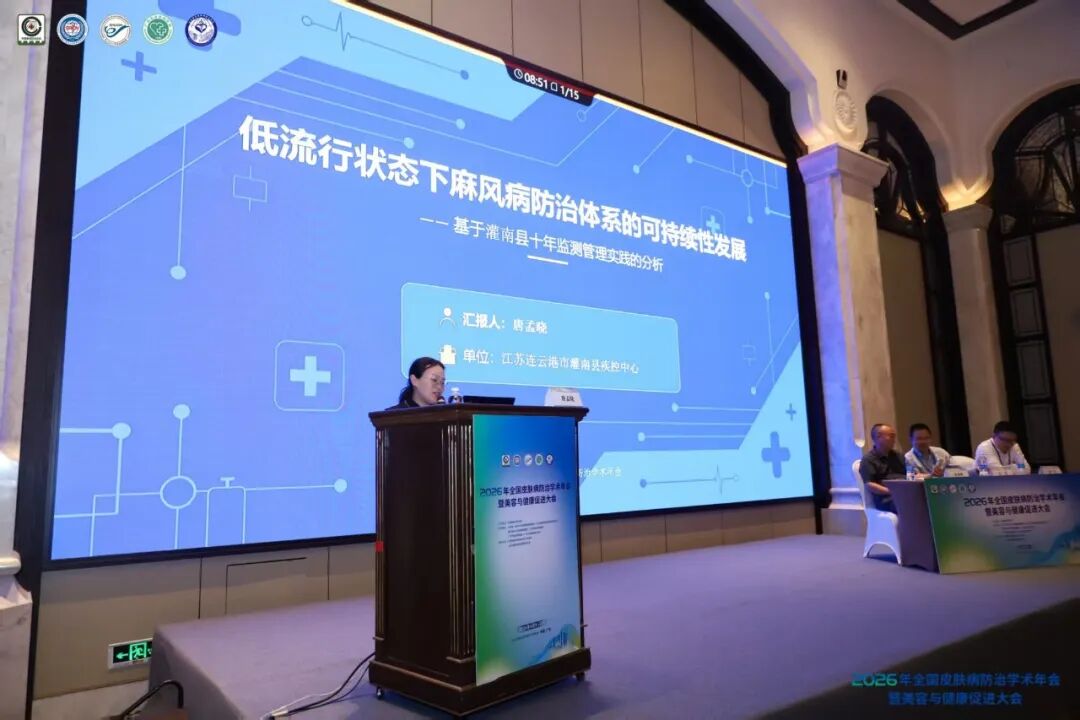 “近十年,全县一盘棋融合,稳固制度根基将麻风监测纳入基层医疗机构日常工作。”4月9日,在“2026年全国皮肤病防治学术年会暨美容与健康促进大会”上,江苏省连云港市灌南县疾控中心慢传科科长唐孟晓介绍了“灌南方案”基层实践经验。她表示,灌南县疾控中心联合相关部门,利用国家基本公卫经费保障运转,使麻风防止工作彻底告别了“靠项目吃饭”的脆弱模式,实现了从“临时性”到“常态化”的转变。